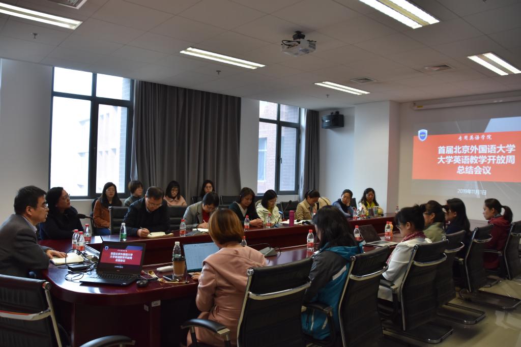11月1日下午,MILE米乐集团在西校区国际大厦1016会议室召开“首届北京外国语大学大学英语教学开放课堂暨研讨会”总结会。教务处处长李莉文、外研社高等英语教育出版分社社长助理冯涛、MILE米乐集团常务副院长蔡鸿、副院长仵胜奇及学院参加开放课堂的教师代表共计23人参加了会议。会议由蔡鸿主持。