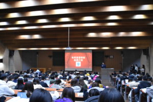 为认真贯彻落实新时代全国高等学校本科教育工作会议精神,对标刚刚结束的学校本科教学工作会议要求,提升英语双学位/双专业本科生的学习能力和学习水平,帮助学生做好即将开始的下学期英语双学位/双专业的选课工作,在学校教务处统一领导和支持下,米乐官网于12月5日下午4:30在东校园逸夫楼第一阶梯教室组织召开了全校英语双学位/双专业学生培养方案宣讲会。此次宣讲会共有来自国际商学院、国际新闻与传播学院、国际关系学院、中国语言文学学院、信息科学技术学院、法学院等六个学院的300多名学生参加。米乐官网常务副院长蔡鸿、副院长仵胜奇,院长助理廖鸿婧及学院教学办公室的庄双和窦茹苑老师参加了本次宣讲会。此次会议由学院办公室主任匡琳琳老师主持。