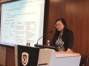 全组老师首先认真听取了李莉文老师做的题为“将跨文化交际能力培养融入英语口语教学”的发言。李老师首先演示了她在课堂教学中如何把跨文化元素融入英语口语教学大纲,并展示了第一单元的详细教案。李老师给每个单元增加了两个涉及跨文化元素的教学任务,具有真实性、思想性和可操作性。此外,李老师还改编了教材自带的PowerPoint等课件以使其形式和内容更贴合我校学生的认知水平、语言水平和兴趣点。李老师的展示为大家如何将教学与科研以及理论与实践相结合做出了很好的示范,激起了大家的热烈讨论,也给了大家的教学实践和行动研究等工作的开展带来了启迪、鼓舞和鞭策。