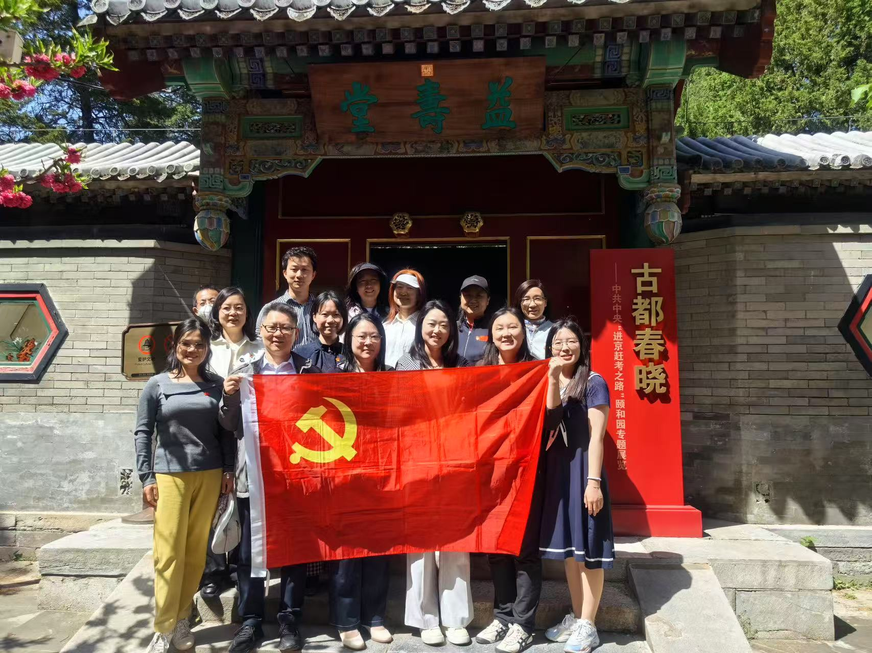 活动首站选在颐和园益寿堂,这里作为中共中央“进京赶考”第一站的历史见证地,是北京市重要的爱国主义教育基地。在讲解员的带领下,党员们深入了解了1949年毛泽东同志率中共中央进驻北平前夕的重大历史事件。面对党旗,支部党员集体重温入党誓词,回顾初心使命,汲取奋进力量。