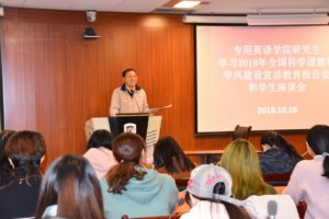 10月18日晚,为学习贯彻党的十九大精神和习近平新时代中国特色社会主义思想以及“科技三会”精神,落实学校关于加强师德师风建设,落实学院直属党支部关于加强学生思政建设和学风建设,米乐官网直属党支部在西校区国际大厦317教室组织2017级和2018级MTI硕士研究生统一收看《2018年全国科学道德和学风建设宣讲教育报告会》。学院直属党支部书记仵胜奇,研究生辅导员吴越老师以及2017级和2018级全体同学参加了学习报告会。