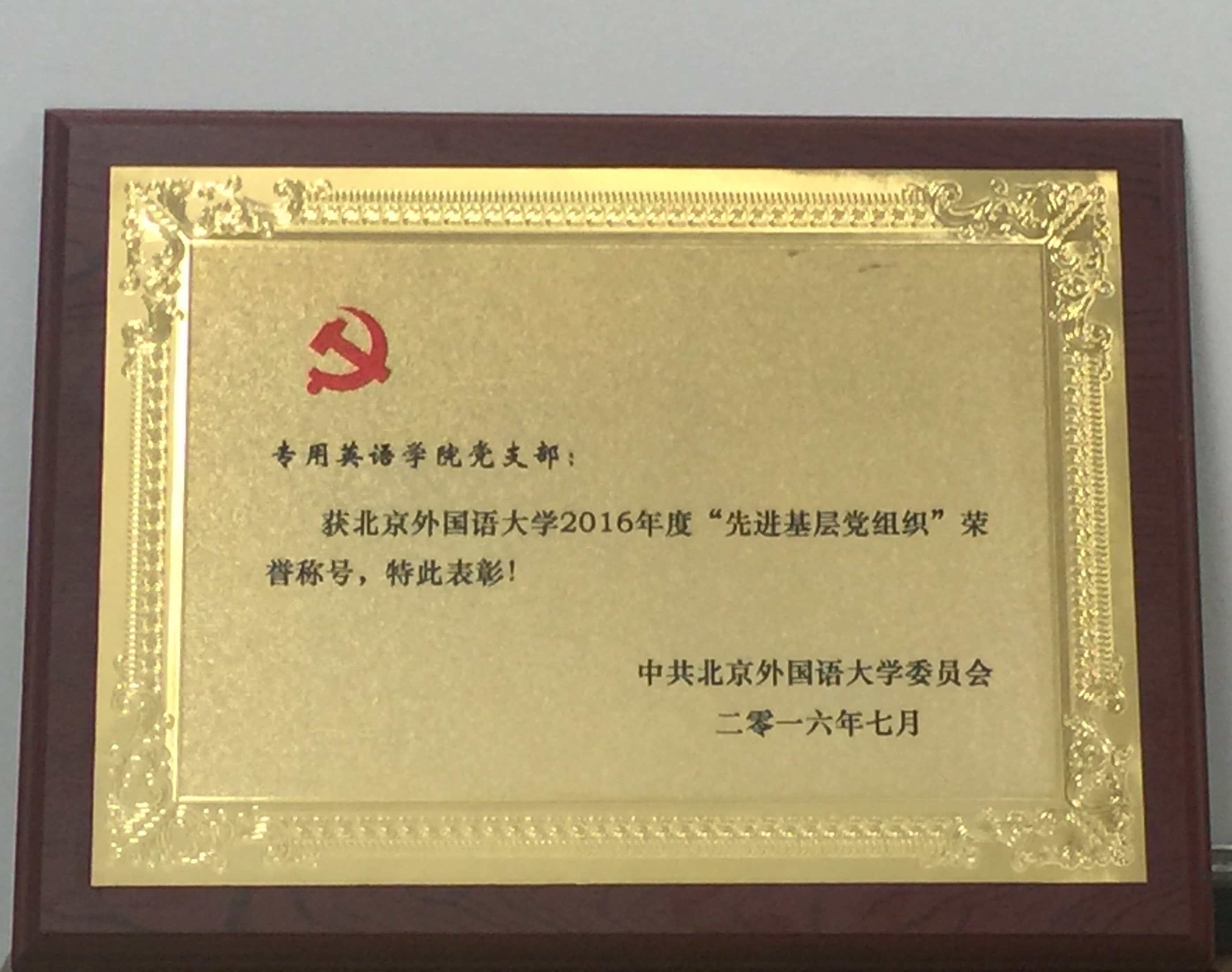 米乐官网党支部获北京外国语大学2016年度“先进基层党组织”荣誉称号